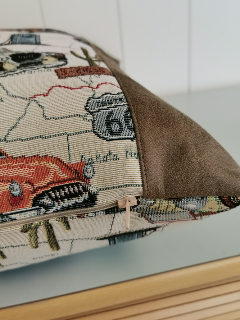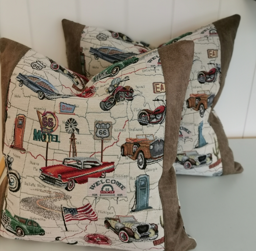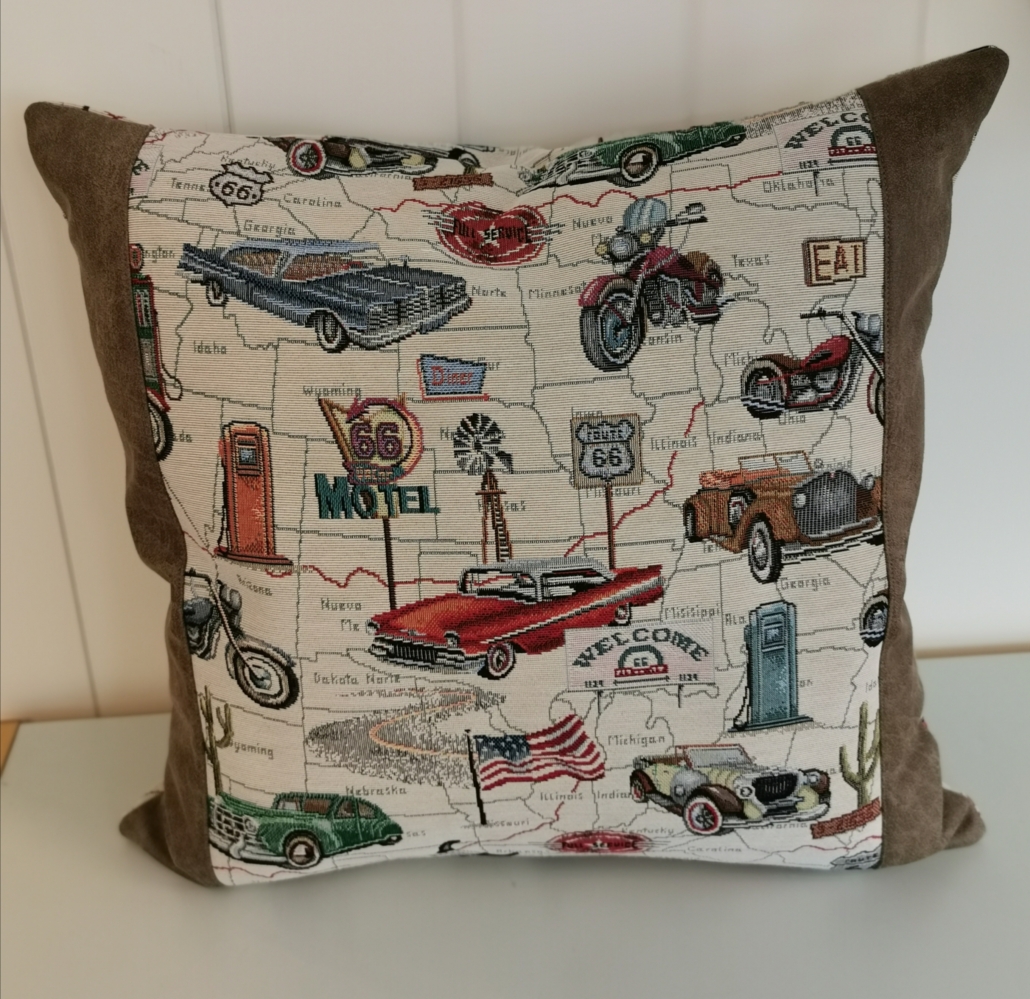 Putetrekk med Amcar motiv og skinnkant.