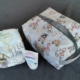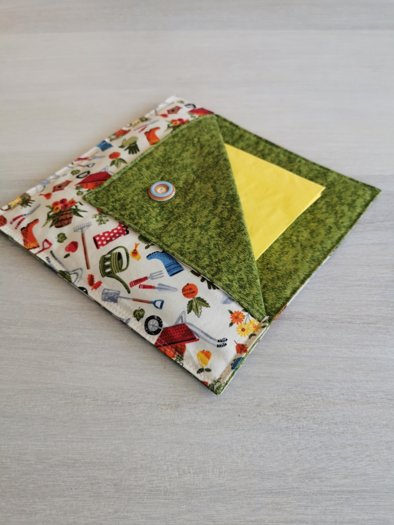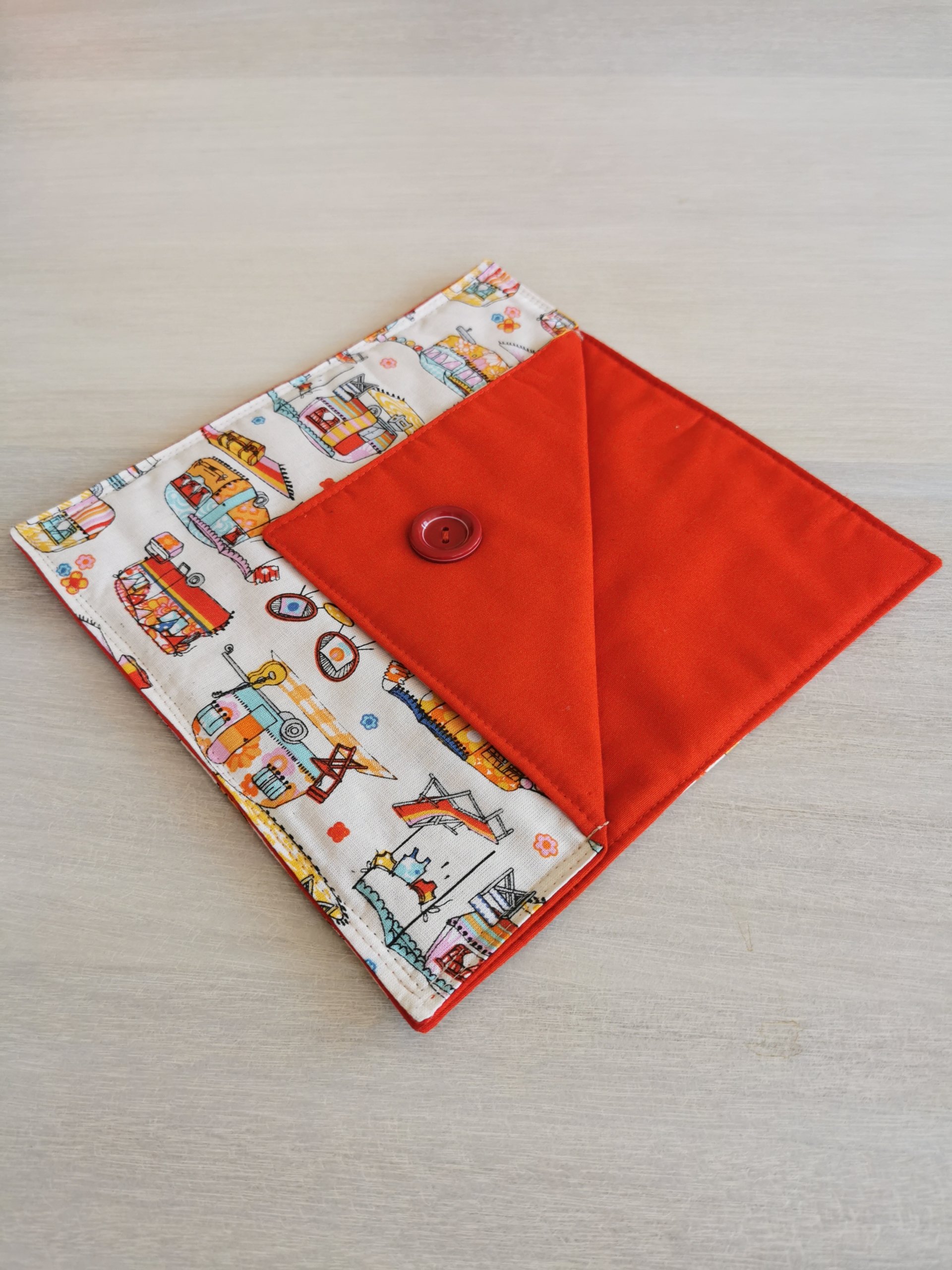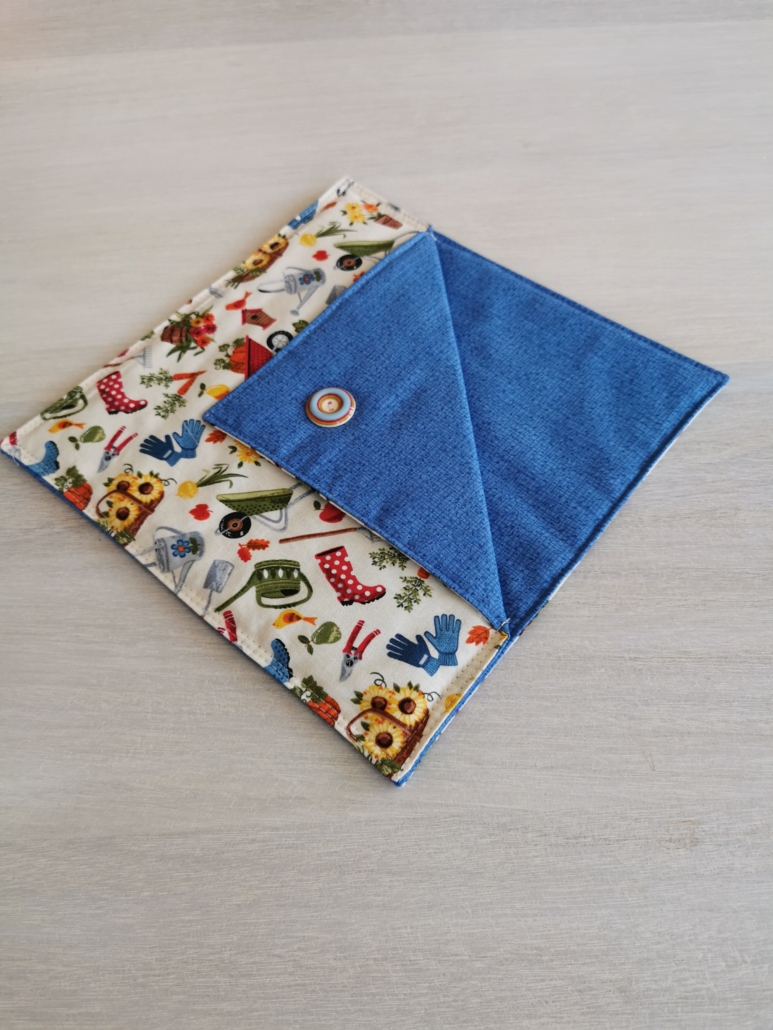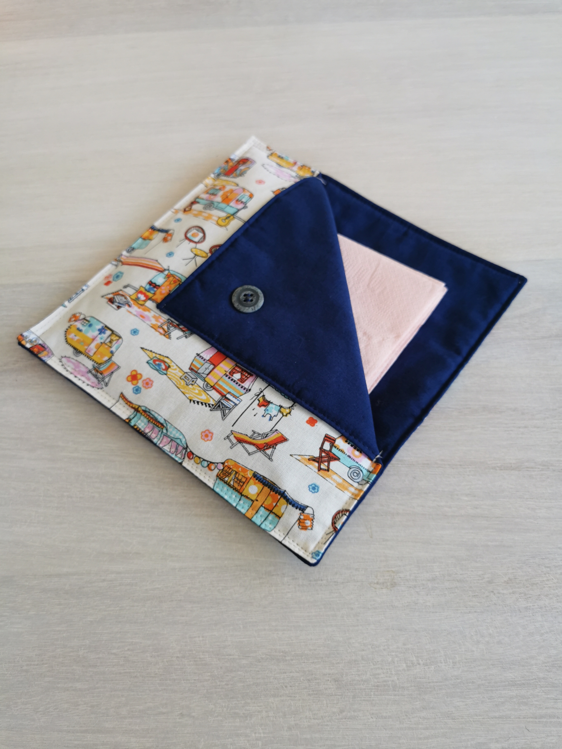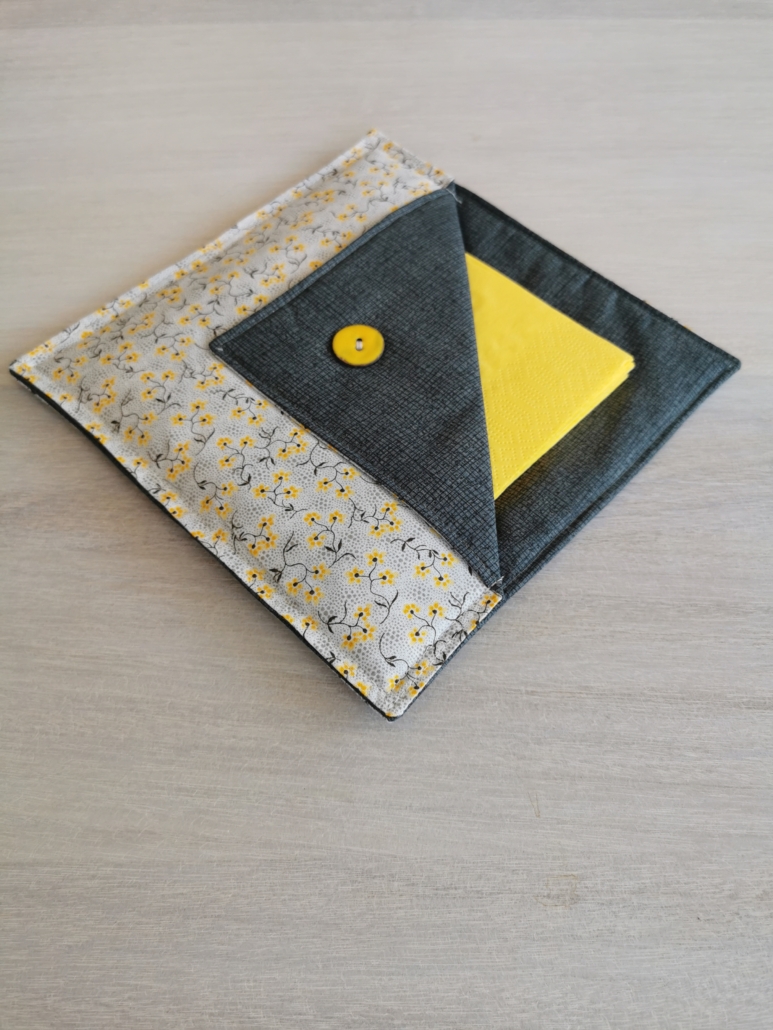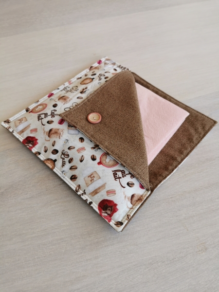Serviettholdere laget i bomull, med en dekorativ knapp.
